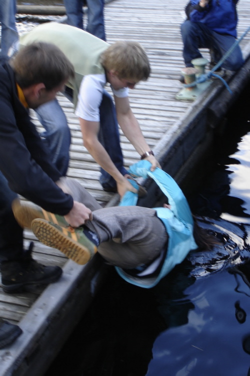 baden im kalten See (ca. 14°C) ...