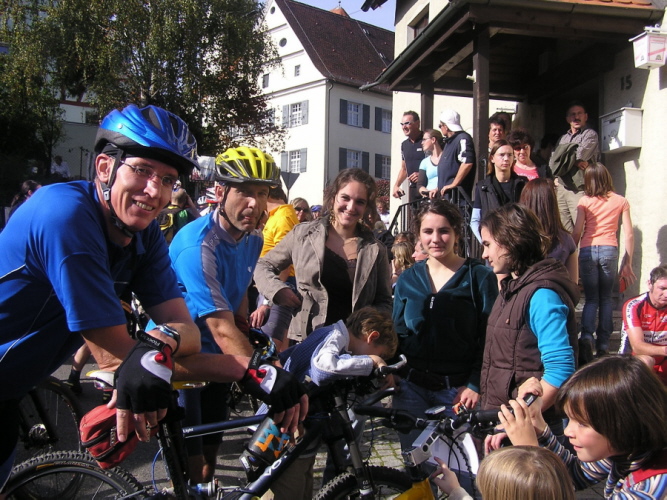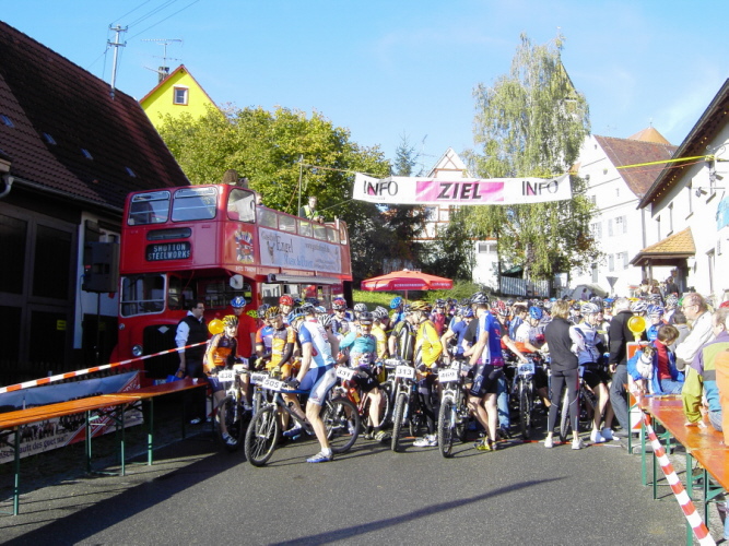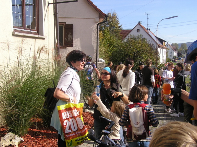 Die Fan's zum Anmarsch an den „Wadenbeisser" mit 24% Steigung ...