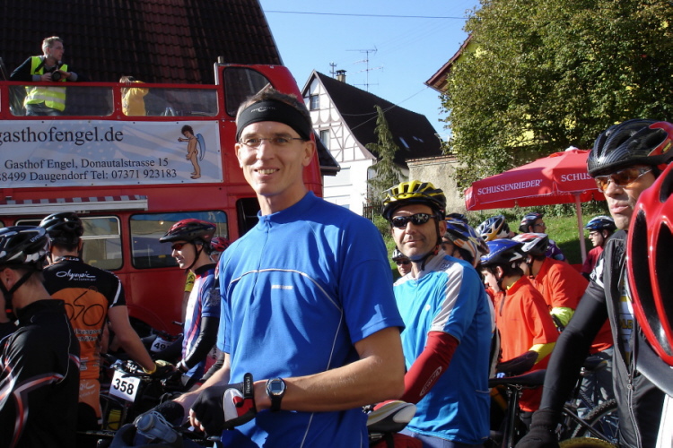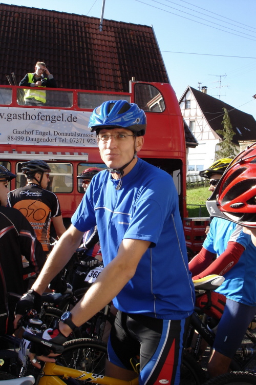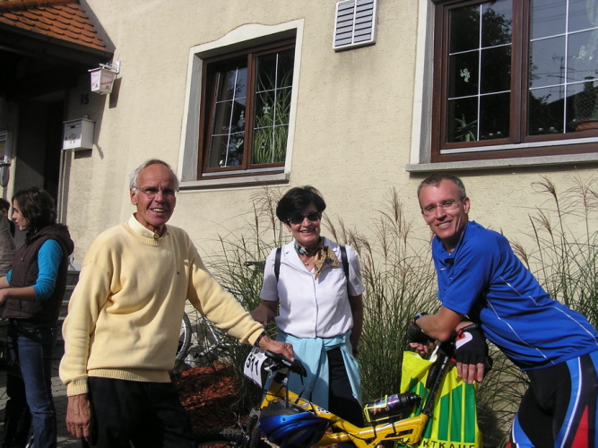 15min später, Flüssigkeitsnachschub für Mick vor dem Anstieg bei der Radlerherberge ...