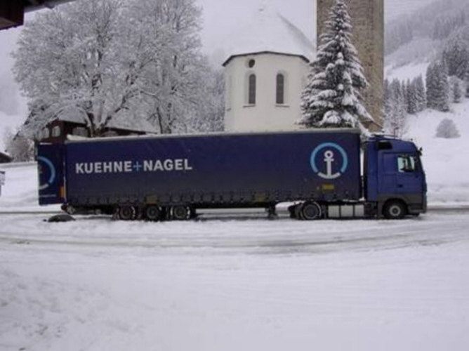 Sattelzug am Postwendeplatz in Mittelberg ...